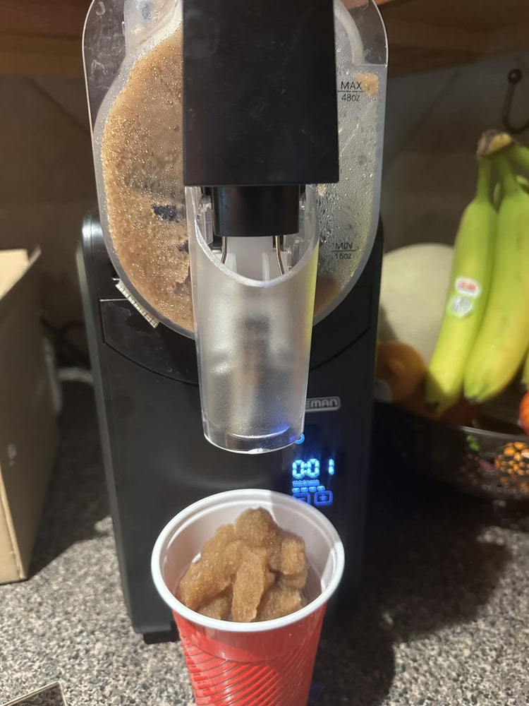 Awesome slushie machine! Set up is super easy, it's really easy to use. The slushies are delicious! We tried lemonade and juice slushies and the consistency of them was spot on.